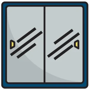 Pintu kaca dan ACP, Pintu lipat, Pintu sliding, dan Swing.